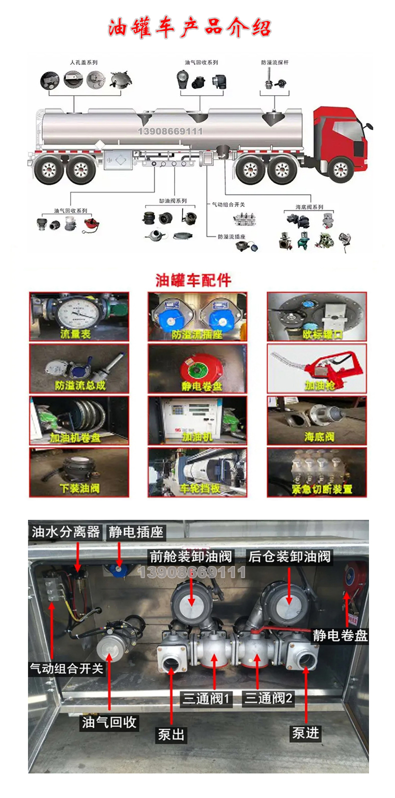 油罐車/加油車/運油車主要用于石油化工部門各種輕質燃油、重油、食用油等的運輸,具有吸油,泵油,多種油分裝,分放等功能.可獨立分倉,可分裝不同的油品、化工品、食品.設計上可實現泵進、泵出過表,泵進、泵出不過表,自流過表、不過表等功能.