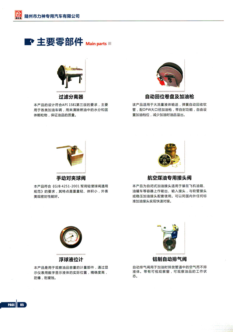罐體總?cè)萘?11.8立方米,有效容積:11.2立方米,危險(xiǎn)貨物運(yùn)輸車輛類型:FL型輛,介質(zhì)zui大密度700千克/立方米;罐體尺寸(長×長軸×短軸)(mm)為:4700×2160×1500;選裝后示廓燈支架樣式,側(cè)、后防護(hù)裝置材料材質(zhì):Q235B,側(cè)、后防護(hù)均用螺栓連接,后部防護(hù)裝置斷面尺寸(寬×高)80×150(mm),后部防護(hù)離地高度:420mm;安裝具有衛(wèi)星定位功能的行駛記錄儀,排氣管前置,安裝前輪盤式制動(dòng)器及限速裝置,限速80km/h,僅采用底盤子午線輪胎;安裝EBS,EBS系統(tǒng)控制器生產(chǎn)企業(yè)/型號(hào)為威伯科(上海)管理有限公司/EBS3;加油裝置型號(hào):65QZ-50/40,BX-80QZB-60/62S-YJ,BX-50QZB-20/45;生產(chǎn)廠家均為:杭州威龍泵業(yè)有限公司.流量計(jì)型號(hào):LL-50T,生產(chǎn)廠家:重慶耐德工業(yè)股份有限公司;流量計(jì)型號(hào):LL-AL50.2/A6.J,LL-AL80.2/A6BGF-Ⅱ.J,LL-LL80.2/A6BGF-Ⅱ.J,生產(chǎn)廠家均為:合肥精大儀表股份有限公司;該車后軸采用空氣懸架;轉(zhuǎn)向輪安裝bao胎應(yīng)急防護(hù)裝置;選裝直接供電式ETC車載裝置.