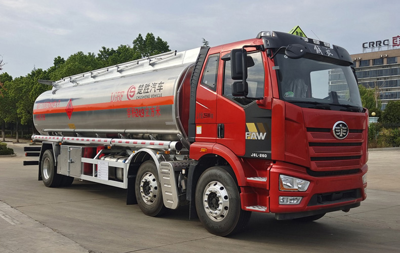 1、該車適用于危險品運輸,運送危險貨物車輛類型為:FL型。準運介質zui大密度為700千克/立方米,罐體總容量24.9立方米,罐體有效容積23.9立方米,罐體外形尺寸(長×寬×高)(mm):7900×2300×1700。2、側防護材料為鋁合金,螺栓連接,后防護材料為Q235,螺栓連接,截面尺寸(mm)80×140,下邊緣離地高500mm。3、僅選用排氣管前置、限速裝置(限速79km/h)、前輪pan式制動及子午線輪胎的底盤。轉向輪安裝輪胎bao胎應急防護裝置。后軸采用空氣懸架。安裝帶有衛星定位功能的行駛記錄儀。EBS控制系統生產廠家/型號:威伯科汽車控制系統(中國)有限公司/EBS3。發動機/油耗值(L/100km)對應關系為:CA6DH1-26E61/ 26.04,CA6DH1-24E61/26.04,CA6DH1-22E61/26.04。選裝ETC。隨底盤選裝駕駛室。罐體上部選裝上走道,第二軸選裝方形擋泥板。選裝左側工具箱樣式及左右側后部工具箱,選裝鐵制滅火器筒,選裝裝卸軟管存放箱樣式。