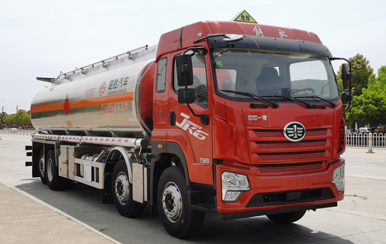 該車適用于危險品運輸,運送危險貨物車輛類型為:FL型.準運介質zui大密度:830千克/立方米,罐體總容量26.67立方米,罐體有效容積25.9立方米,罐體外形尺寸(長×寬×高)(mm):8000×2450×1700.側防護材料為鋁合金,螺栓連接;后防護材料為Q235,螺栓連接,截面尺寸80×140mm,下邊緣離地高490mm.該車排氣管前置,安裝限速裝置(限速79km/h),安裝前輪pan式制動及子午線輪胎,轉向輪安裝輪胎bao胎應急防護裝置,后軸采用空氣懸架,安裝帶有衛星定位功能的行駛記錄儀.EBS型號/生產廠家:EBS5/克諾爾制動系統(大連)有限公司.車輛第四軸為隨動橋,不可提升.發動機/油耗值(L/100km)對應關系為:CA6DLD-29E6/36.29.隨底盤選裝平頂駕駛室.該車可選裝直接供電式ETC車載裝置.罐體上部選裝上走道,第二軸選裝弧形膠制擋泥板或方形擋泥板,選裝左右側后部工具箱及左側工具箱樣式,選裝鐵制滅火器筒,選裝罐體兩側管箱樣式。