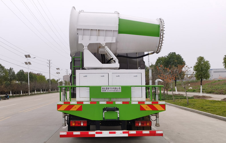 消防灑水車安裝消防車專用消防泵、消防炮、消防取力器。罐體后帶工作平臺(tái),平臺(tái)上安裝綠化灑水炮,灑水炮可全方位旋轉(zhuǎn),帶前沖后灑,帶側(cè)噴,可連續(xù)調(diào)成直流狀、霧狀、大雨、小雨、毛毛雨,帶安全護(hù)欄。罐體頂部安裝消防水炮。帶消防接口,可通過消防栓進(jìn)水,帶自流閥,消防綠化卷盤。