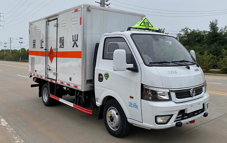 1、該車適用于運輸危險品,運輸具有獨立容器(瓶)包裝的物品,危險貨物運輸車輛類型:EX/Ⅲ,危險貨物類項號:1.1B,1.1G,1.3C,1.1D,1.2D,1.1C,1.4G。廂體頂部封閉,不可開啟。2、側、后防護材料均采用Q235,焊接連接,后防護截面尺寸(mm)100×50,下邊緣離地高405mm。3、僅選用排氣管前置、限速裝置(限速80km/h)、前輪盤式制動及子午線輪胎的底盤,轉向輪安裝輪胎爆胎應急防護裝置。安裝帶有衛星定位功能的行駛記錄儀。ABS系統控制器型號/生產廠家:ABS/ASR-12V-4S/4M/襄陽東風隆誠機械有限責任公司。發動機/油耗值(L/100km)對應關系為:Q23-95E60/11.2。選裝ETC。選裝后視鏡。廂體側面選裝開門型式及位置,選裝不帶側開門。整備質量包括備胎,滅火器,停車楔,隨車工具。貨廂重量850kg;材質/厚度:底板材質為Q235,厚度3mm,側板為外冷扎鋼板+中間阻燃泡沫+內純鋁板,厚度42mm。