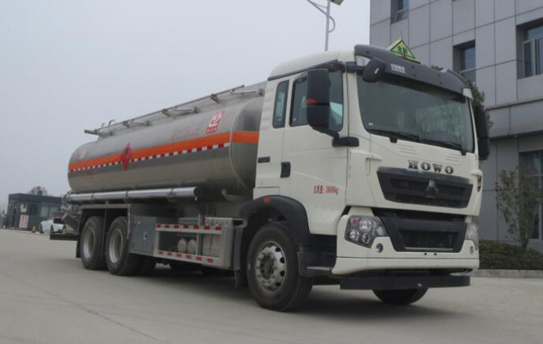 罐體有效容積:20.2立方米,危險貨物運輸車輛的類型為FL型,類項號:3;罐體尺寸(長×長軸×短軸)(mm)為:7000×2300×1600;僅采用4575+1400(mm)軸距;隨底盤選裝駕駛室,選裝工具箱樣式,選裝尾部工具箱及炮筒樣式;側、后防護裝置材料材質:Q235B,側、后防護均采用螺栓連接,后防護裝置斷面尺寸為(mm):80×150,后部防護離地高度:460mm;安裝具有衛星定位功能的行駛記錄儀,排氣管前置,安裝前輪盤式制動器和限速裝置,限速80km/h,僅采用底盤子午線輪胎;ABS系統控制器生產企業/型號為威伯科(上海)管理有限公司/4460046300;選裝EBS,EBS系統控制器生產企業/型號為威伯科(上海)管理有限公司/EBS3;發動機型號及油耗值(L/100km)為:MC07.27-60(36.6),MC07.31-60(36.6),MC07.34-60(36.6), MC09.35-60 (36.5), MC09.38-60(36.5) , MC09.35B-60(36.5) ,MC11.40-60(36.7). MC07.29-60(36.6), MC07.33-60(36.6), MC07H.29-60(36.6), MC07H.33-60(36.6), MC07H.35-60(36.6), WP9H350E62(36.6), MC11.40-61(36.7);該車后軸為采用空氣懸架.轉向輪安裝爆胎應急防護裝置;該車型可選裝ETC車載裝置;